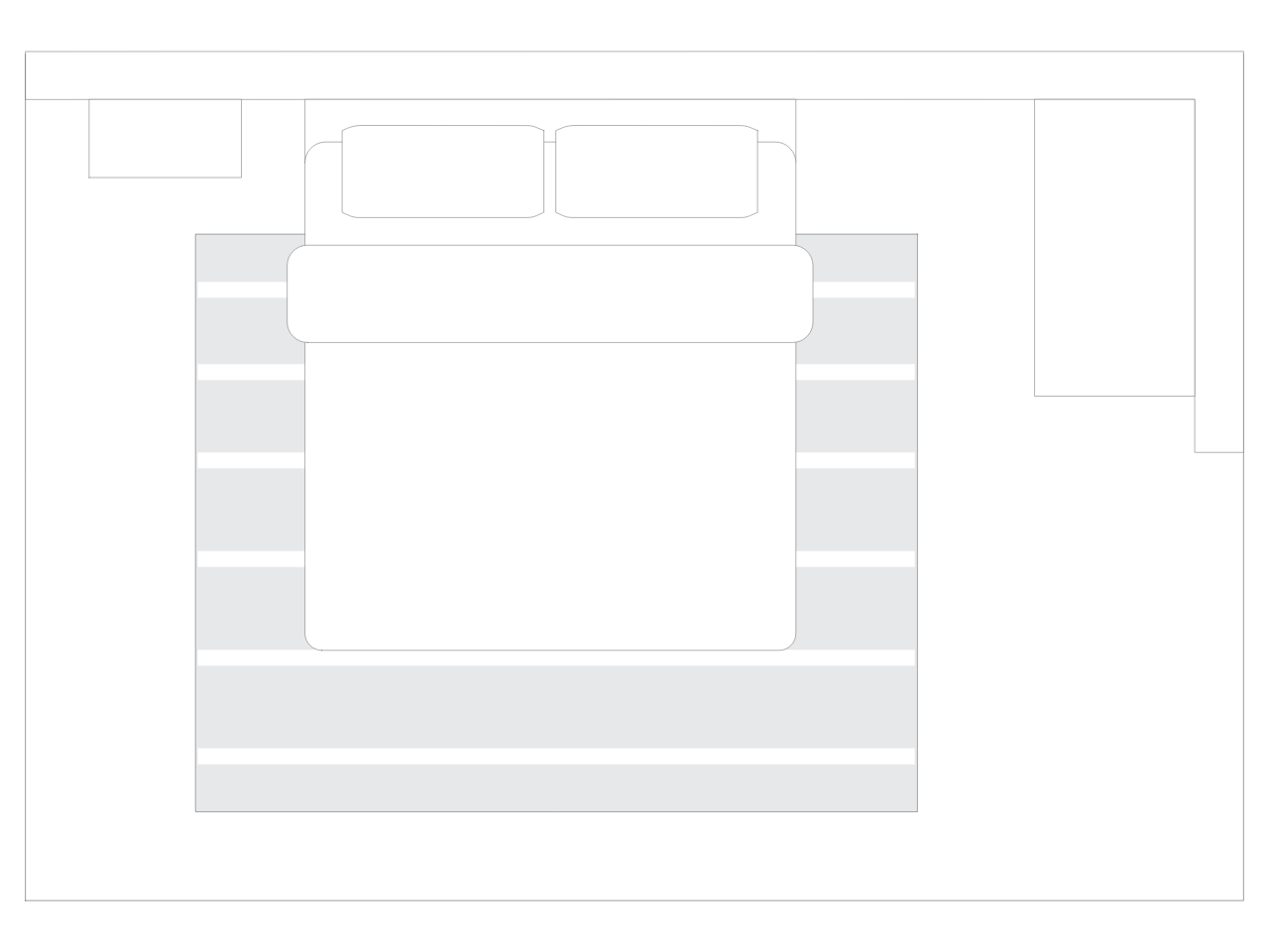 You can also place the headboard end of your bed slightly off of the rug, with the rest of your bed on it. If you prefer this layout method, use an 8'x10' rug for a queen-size bed and a 9'x12' rug for a king.